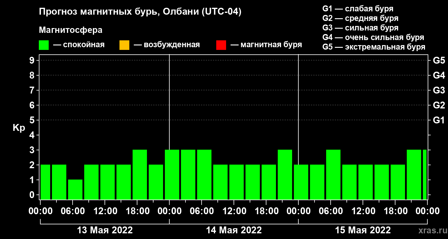 Прогноз магнитных бурь Олбани на 13 мая 2022 года