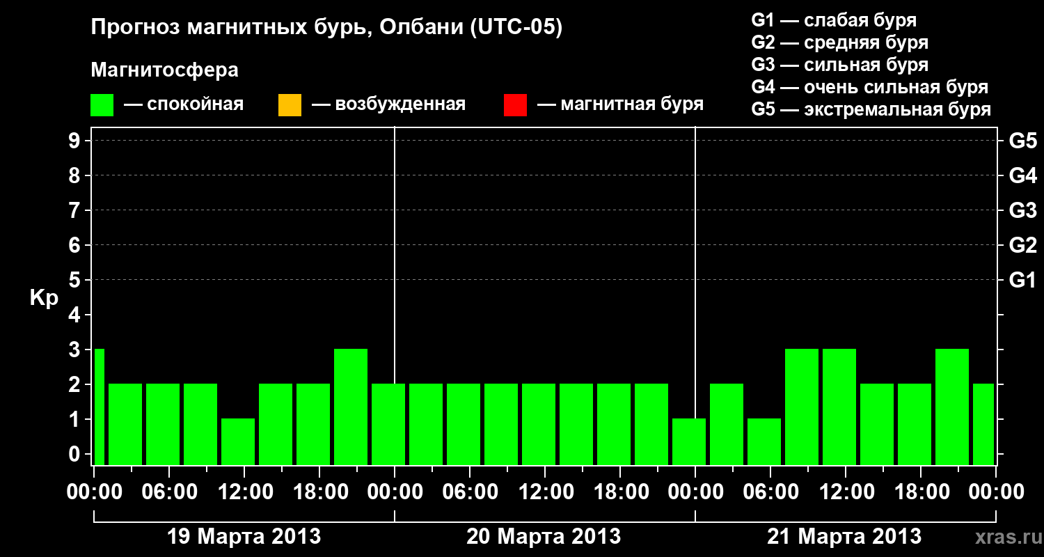 Прогноз магнитных бурь Олбани на 19 марта 2013 года