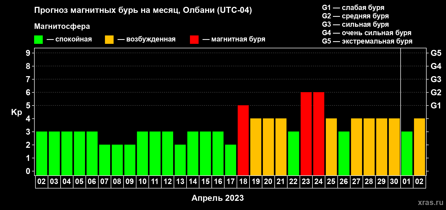 Прогноз магнитных бурь Олбани на 2 апреля 2023 года