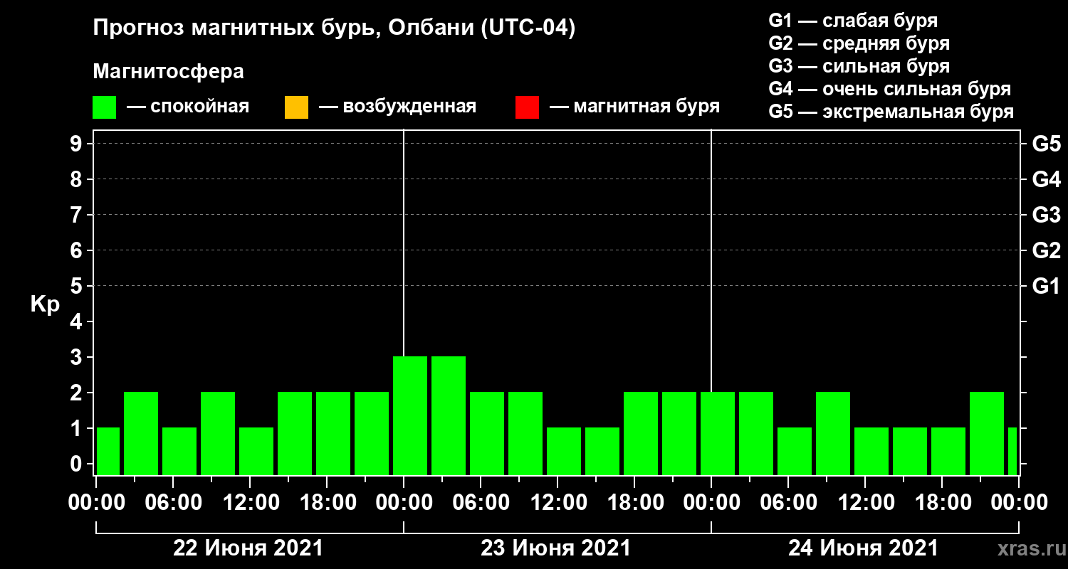 Прогноз магнитных бурь Олбани на 22 июня 2021 года