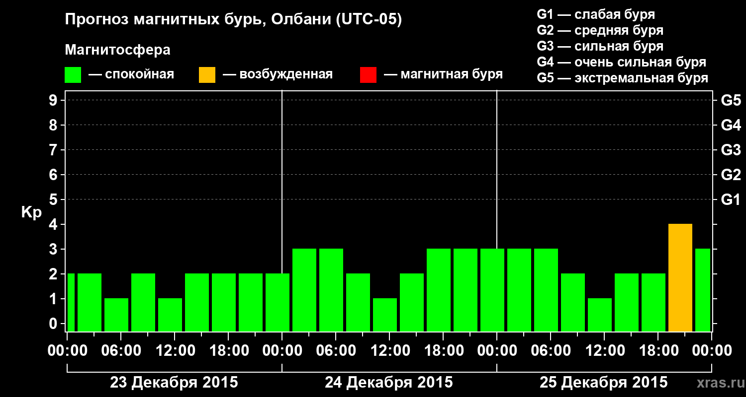 Прогноз магнитных бурь Олбани — 23 декабря 2015 года