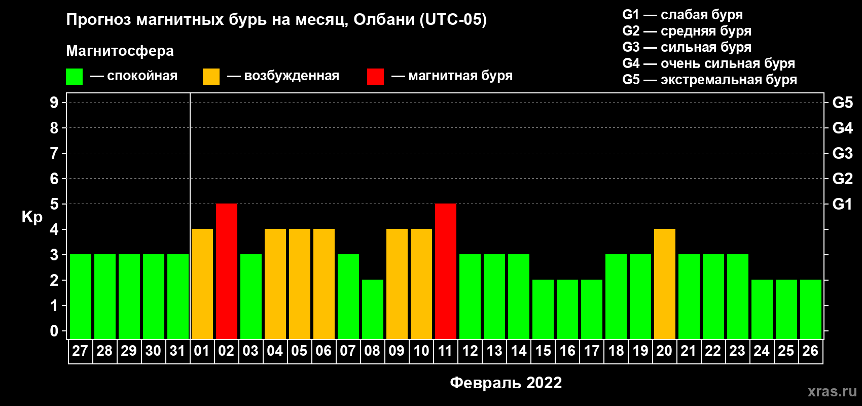 Прогноз магнитных бурь Олбани на 27 января 2022 года