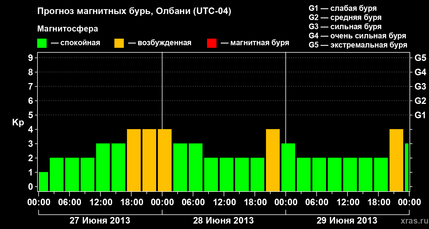 Прогноз магнитных бурь Олбани на 27 июня 2013 года