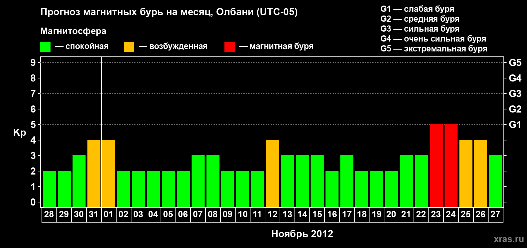 Прогноз магнитных бурь Олбани — 28 октября 2012 года
