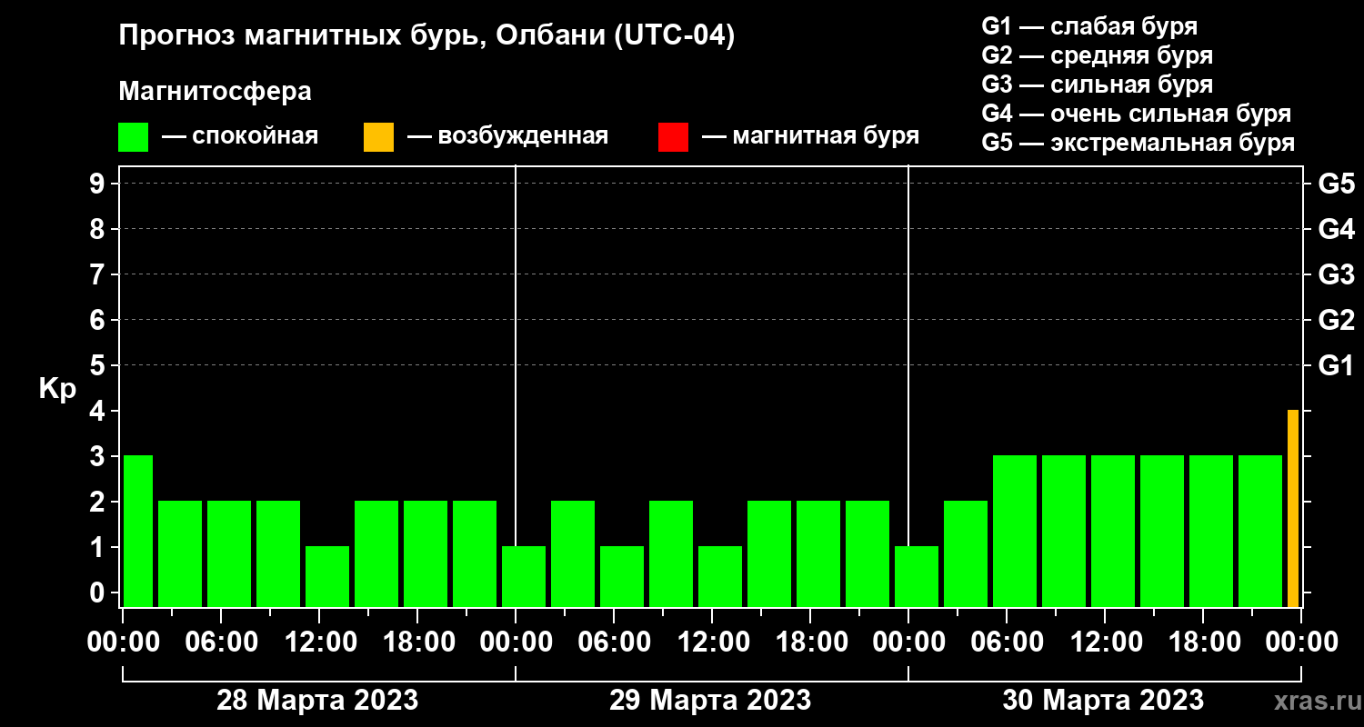 Прогноз магнитных бурь Олбани на 28 марта 2023 года