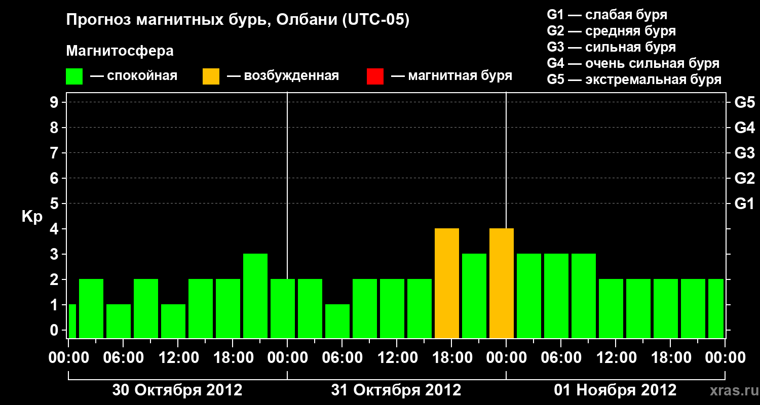 Прогноз магнитных бурь Олбани на 30 октября 2012 года