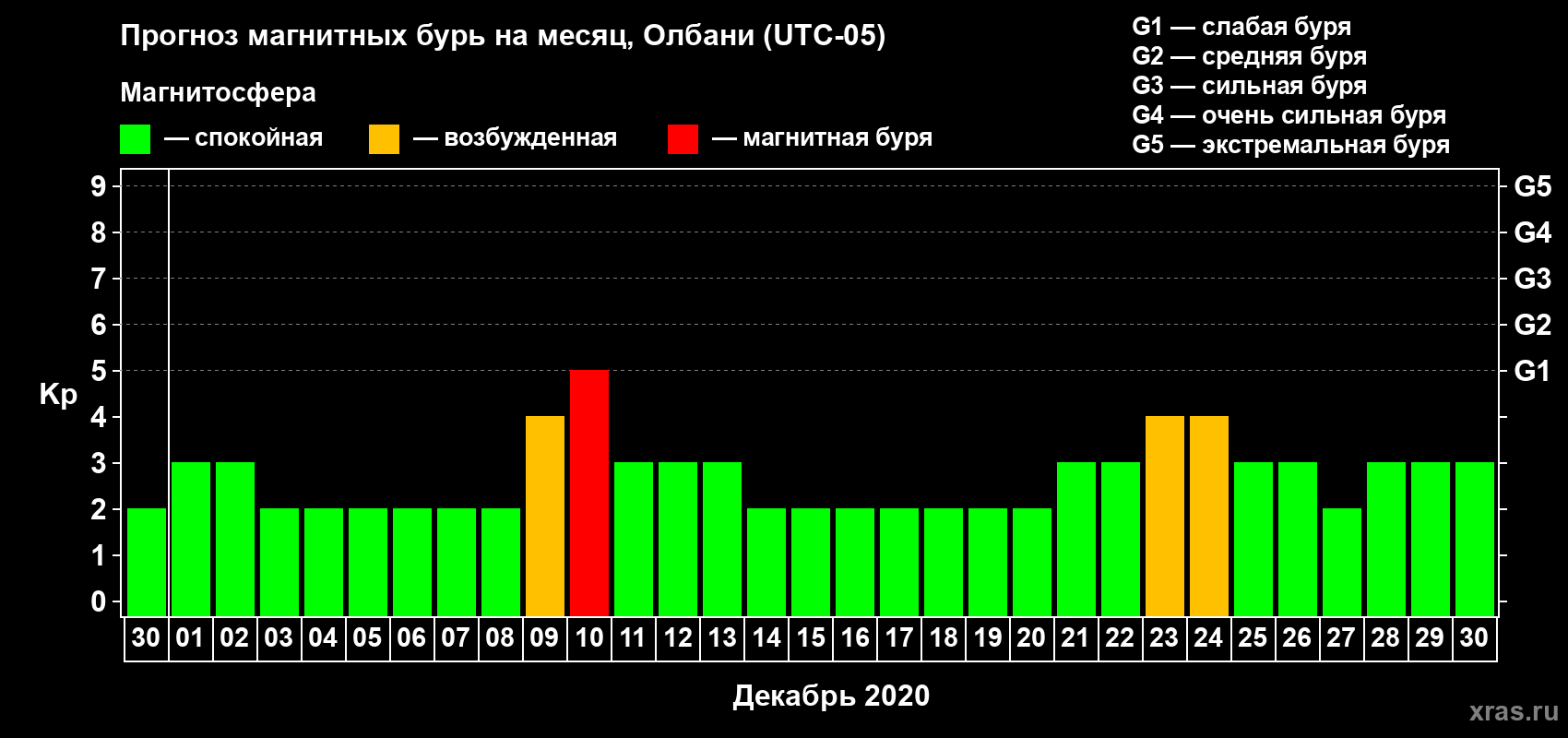 Прогноз магнитных бурь Олбани на 30 ноября 2020 года