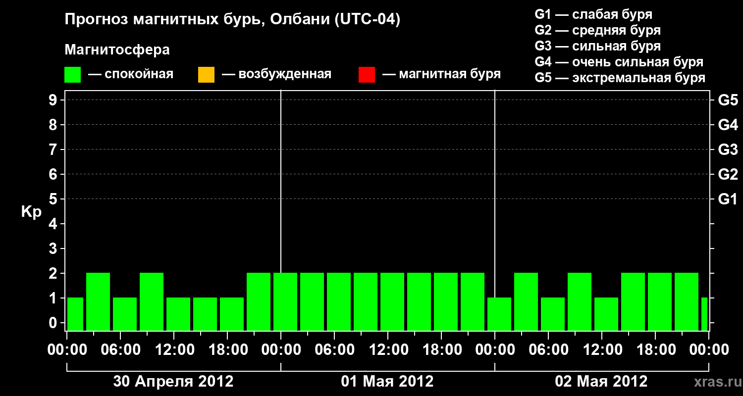 Прогноз магнитных бурь Олбани на 30 апреля 2012 года