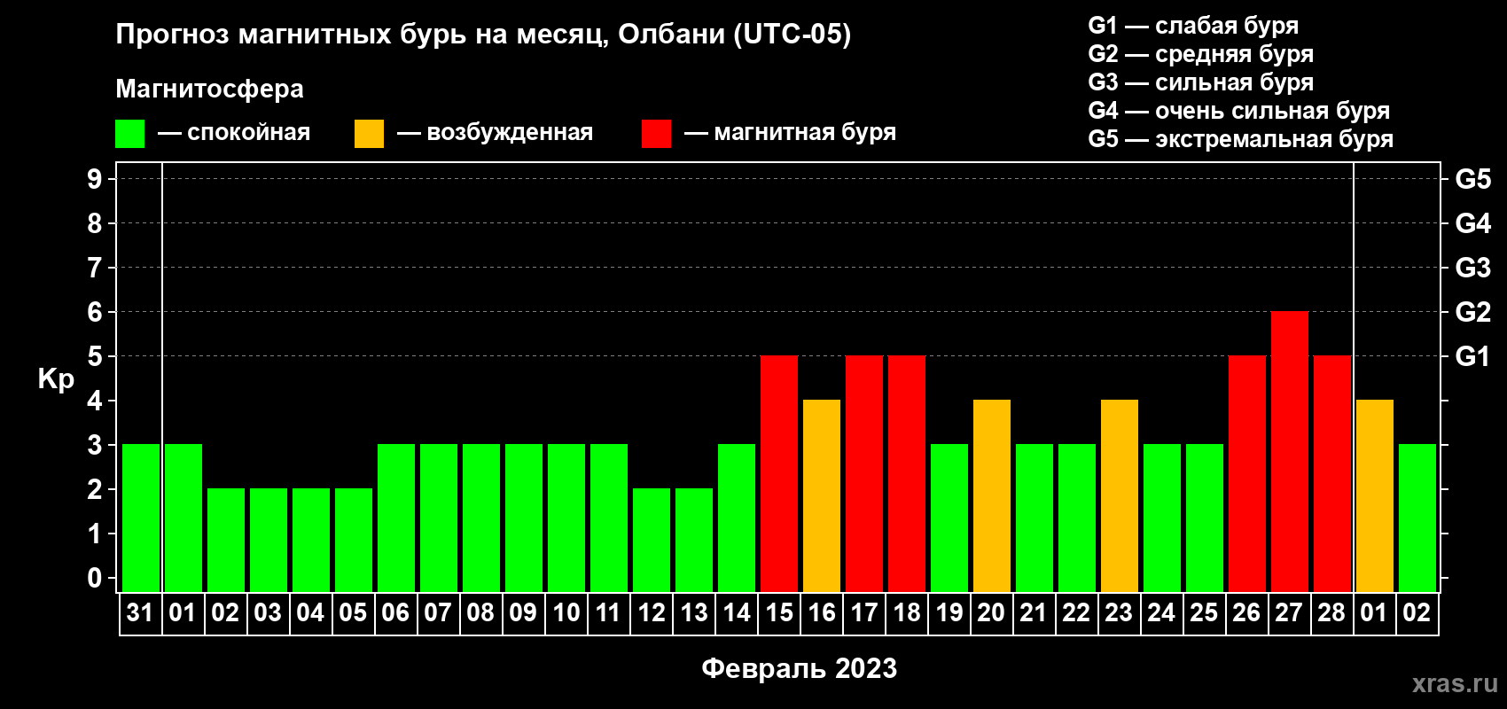 Прогноз магнитных бурь Олбани на 31 января 2023 года