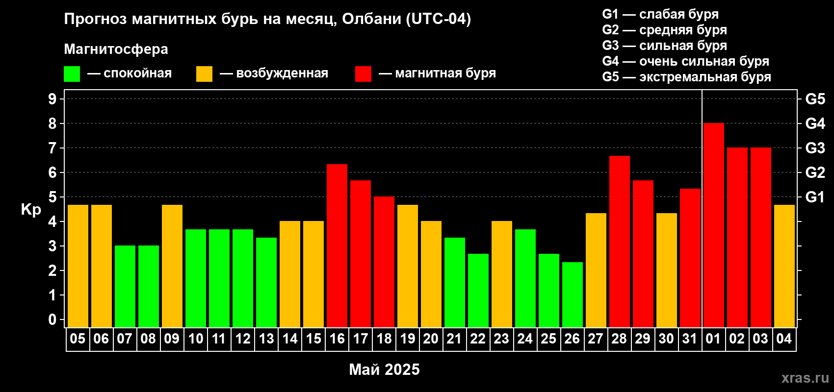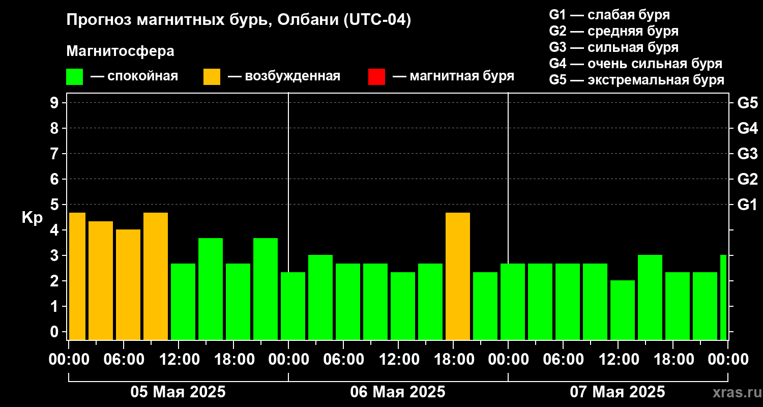 Прогноз магнитных бурь Олбани на 5 мая 2025 года