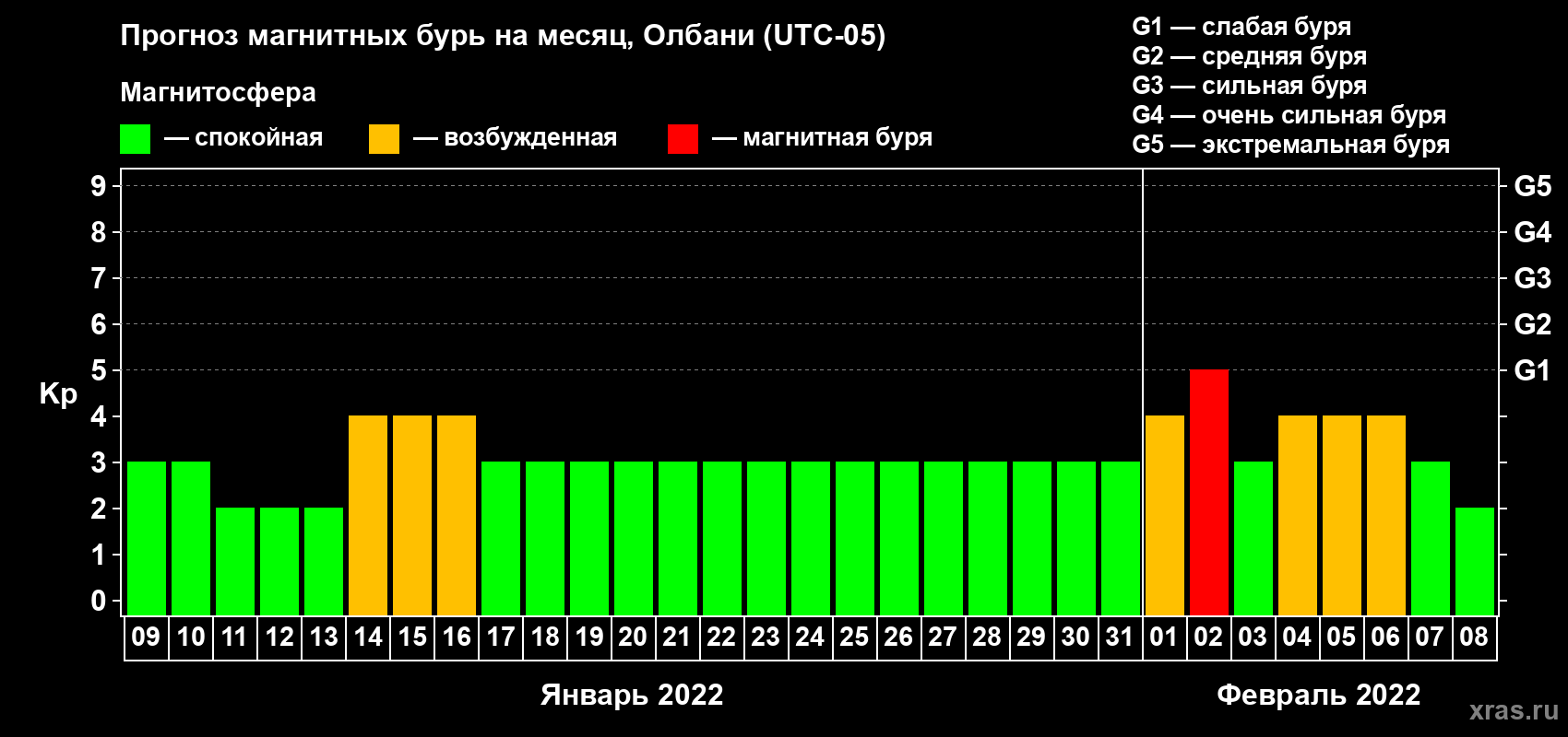 Прогноз магнитных бурь Олбани — 9 января 2022 года