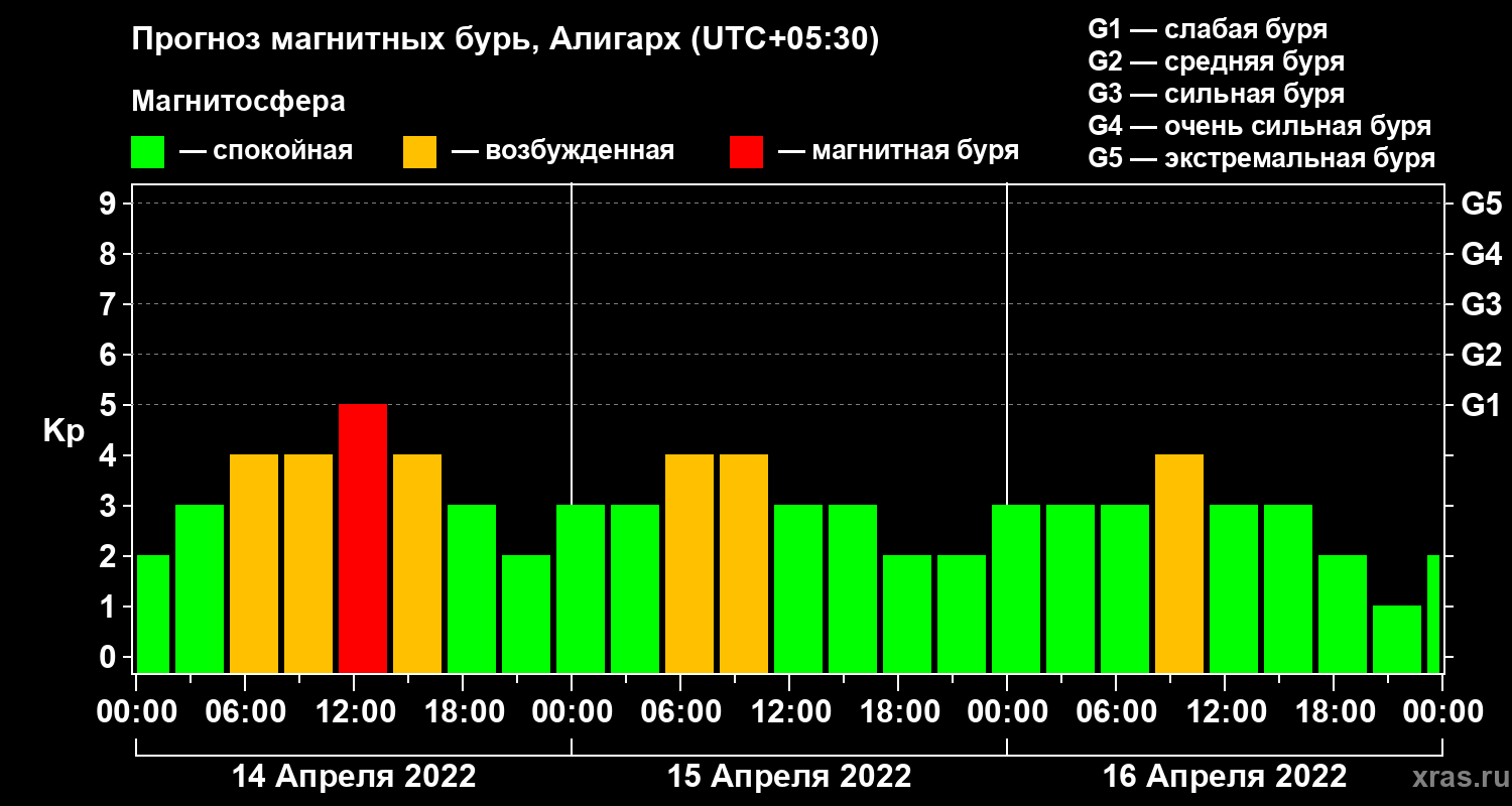 Прогноз магнитных бурь в Алигархе — 14 апреля 2022 года