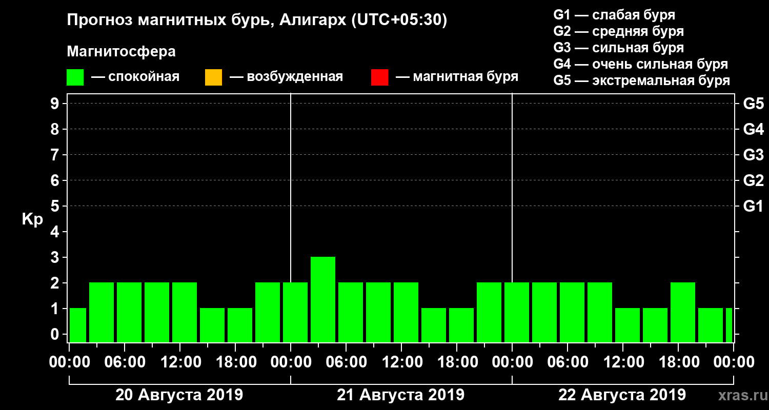 Прогноз магнитных бурь в Алигархе — 20 августа 2019 года