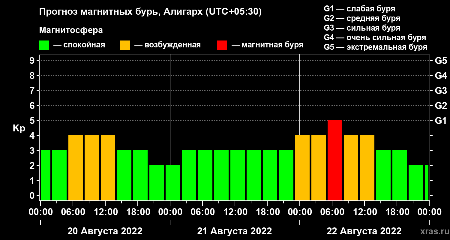 Прогноз магнитных бурь в Алигархе — 20 августа 2022 года