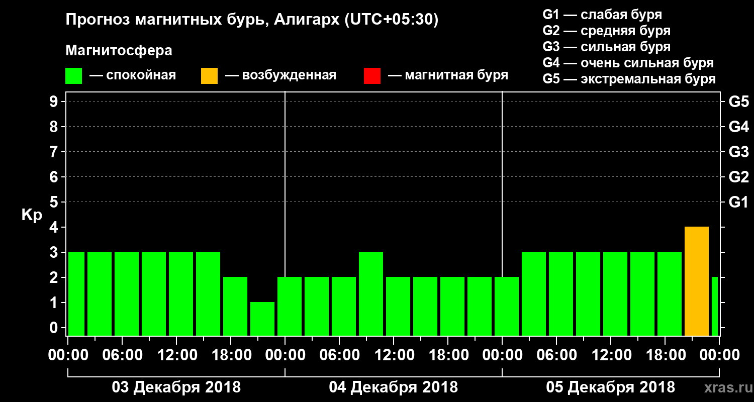 Прогноз магнитных бурь в Алигархе — 3 декабря 2018 года