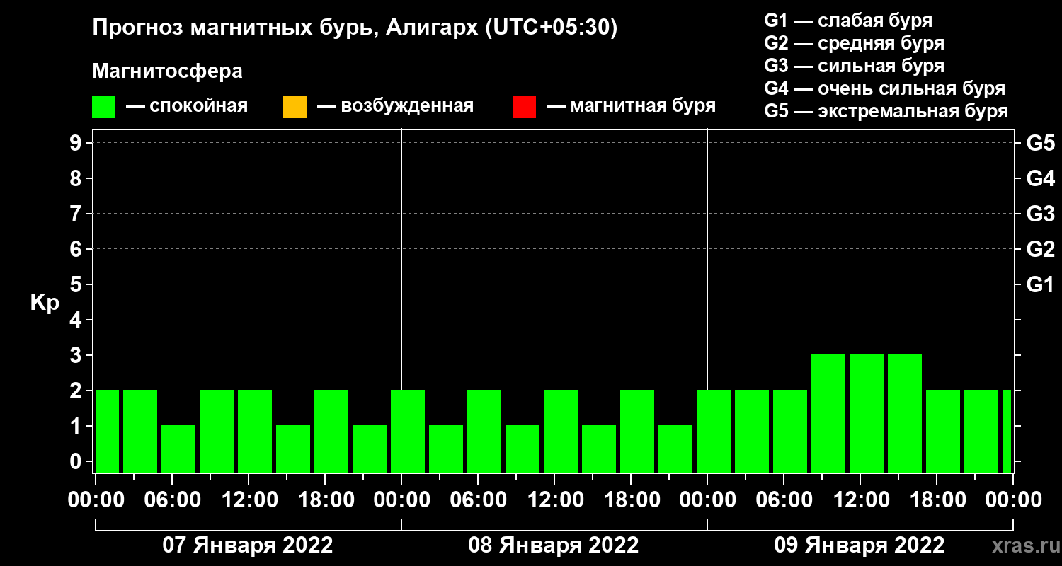 Прогноз магнитных бурь в Алигархе — 7 января 2022 года