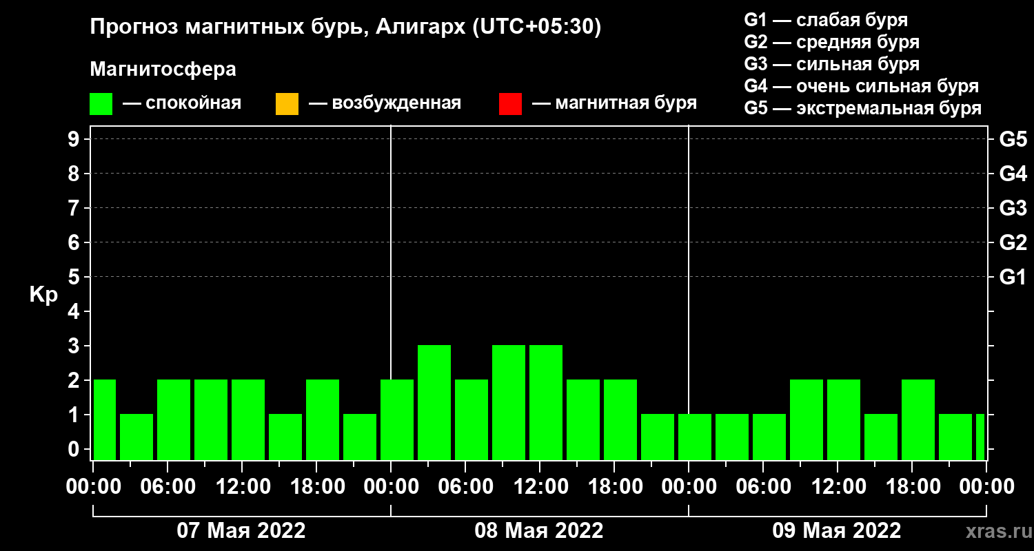 Прогноз магнитных бурь в Алигархе — 7 мая 2022 года