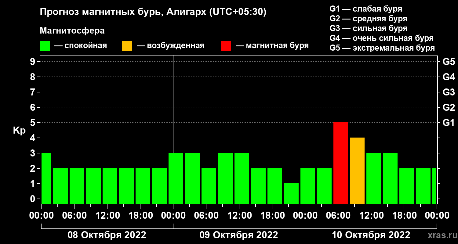 Прогноз магнитных бурь в Алигархе — 8 октября 2022 года