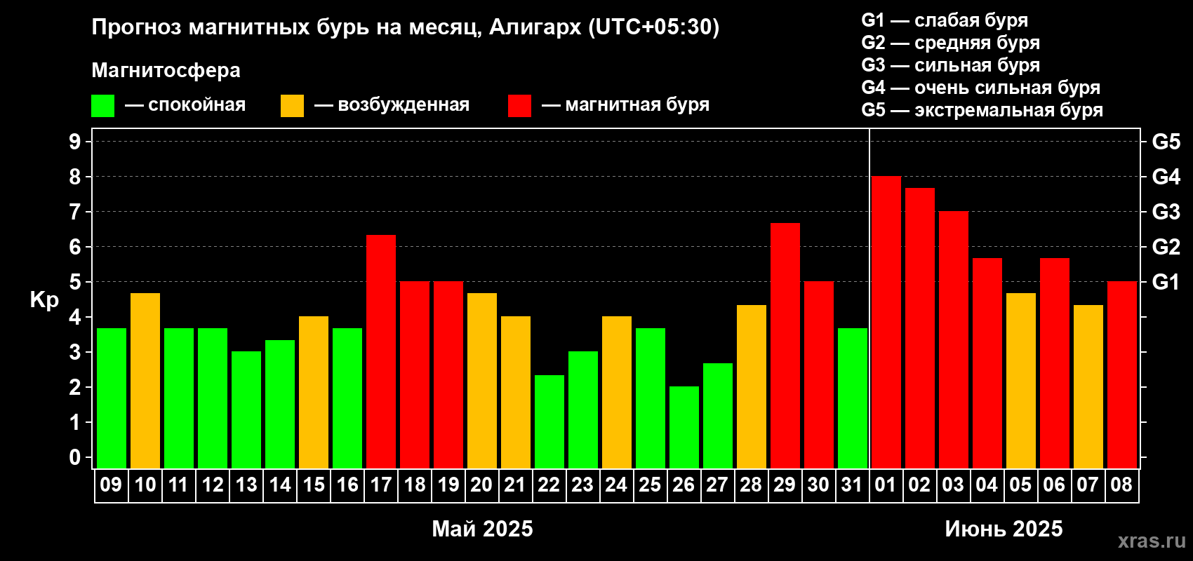 Прогноз магнитных бурь в Алигархе — 9 мая 2025 года