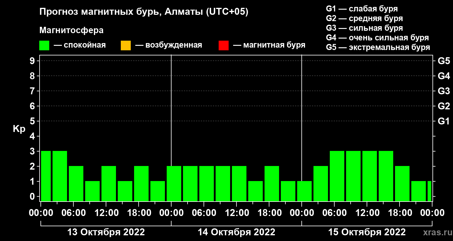 Прогноз магнитных бурь Алматы на 13 октября 2022 года