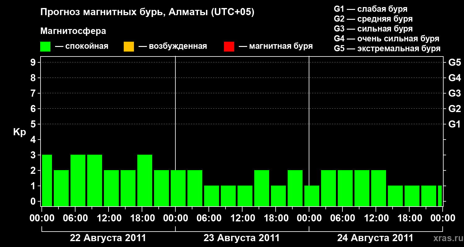 Прогноз магнитных бурь Алматы на 22 августа 2011 года