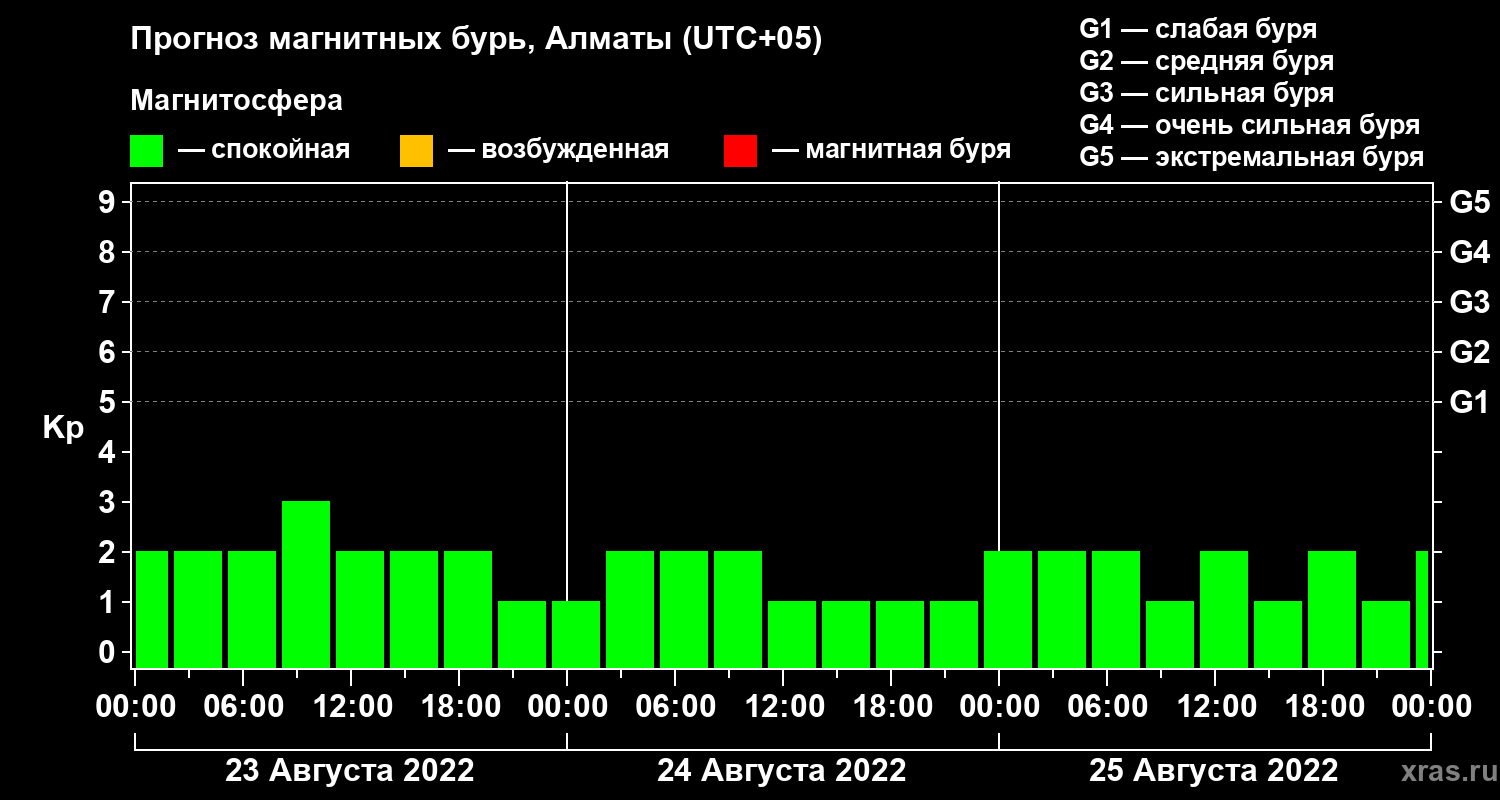 Прогноз магнитных бурь Алматы на 23 августа 2022 года