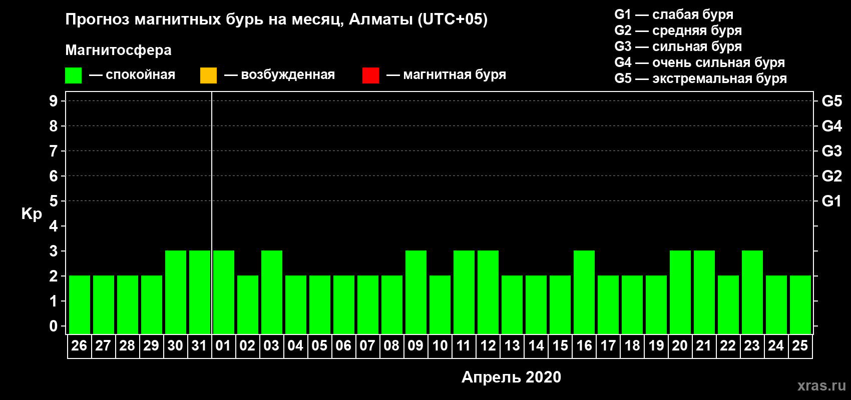 Прогноз магнитных бурь Алматы — 26 марта 2020 года