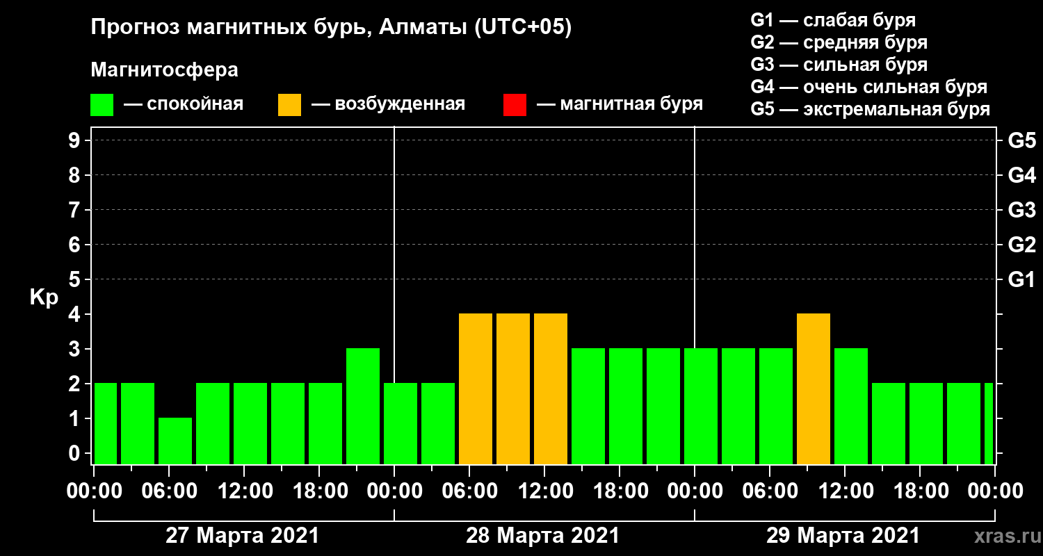 Прогноз магнитных бурь Алматы — 27 марта 2021 года