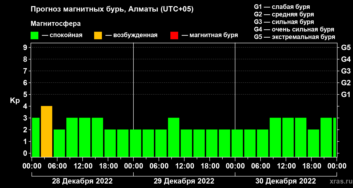 Прогноз магнитных бурь Алматы — 28 декабря 2022 года