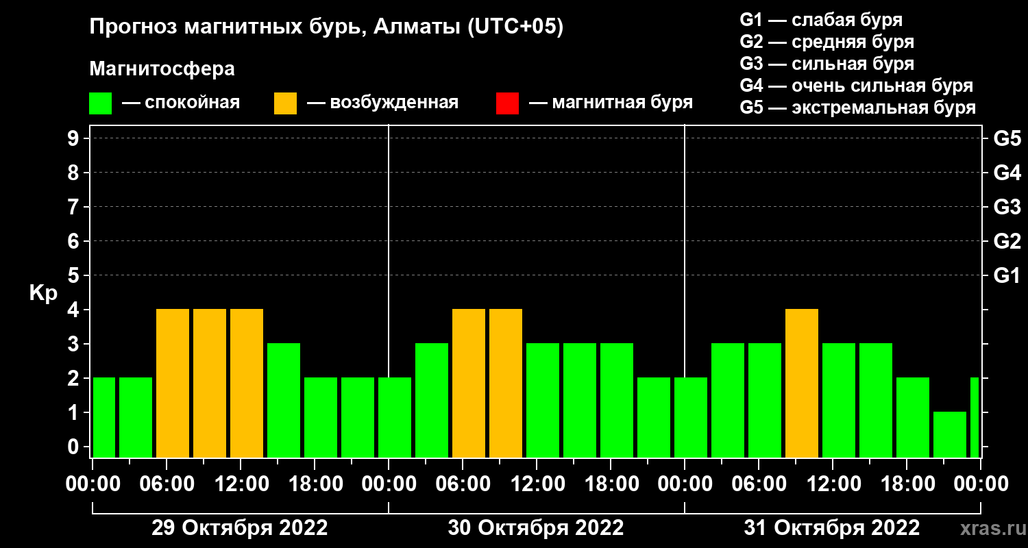 Прогноз магнитных бурь Алматы — 29 октября 2022 года