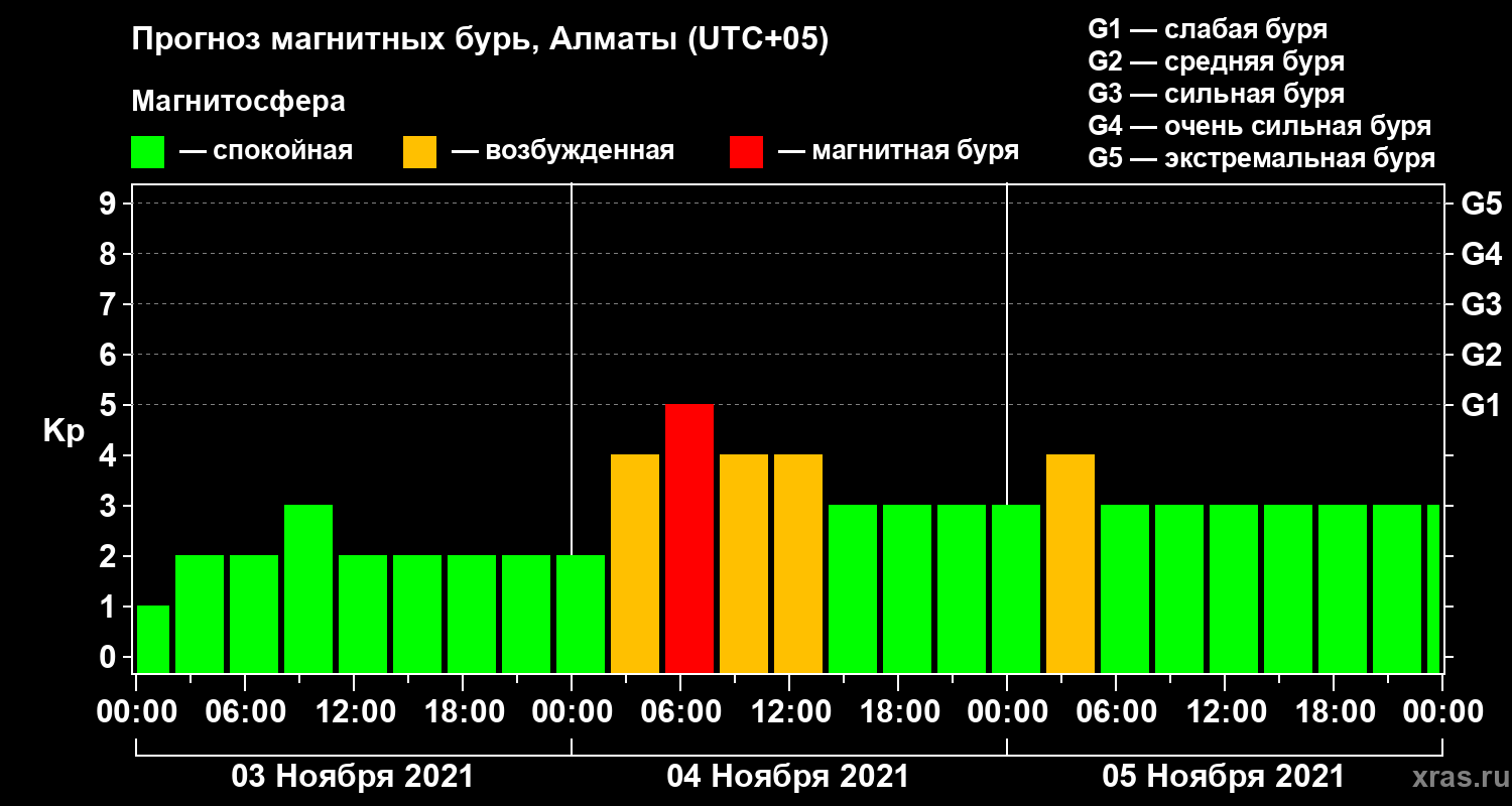 Прогноз магнитных бурь Алматы — 3 ноября 2021 года