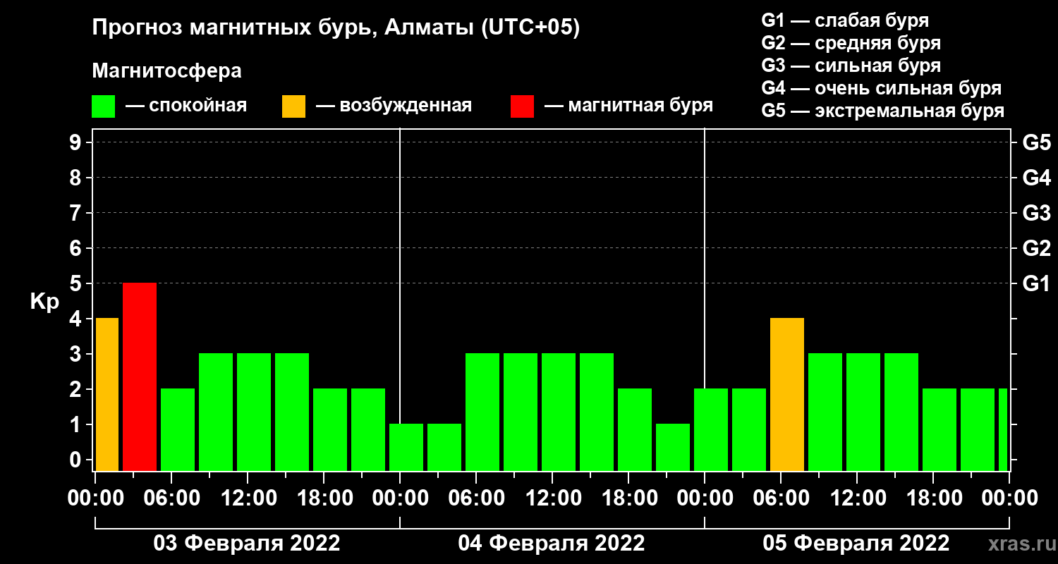 Прогноз магнитных бурь Алматы — 3 февраля 2022 года