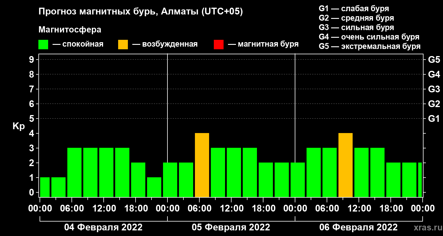 Прогноз магнитных бурь Алматы — 4 февраля 2022 года