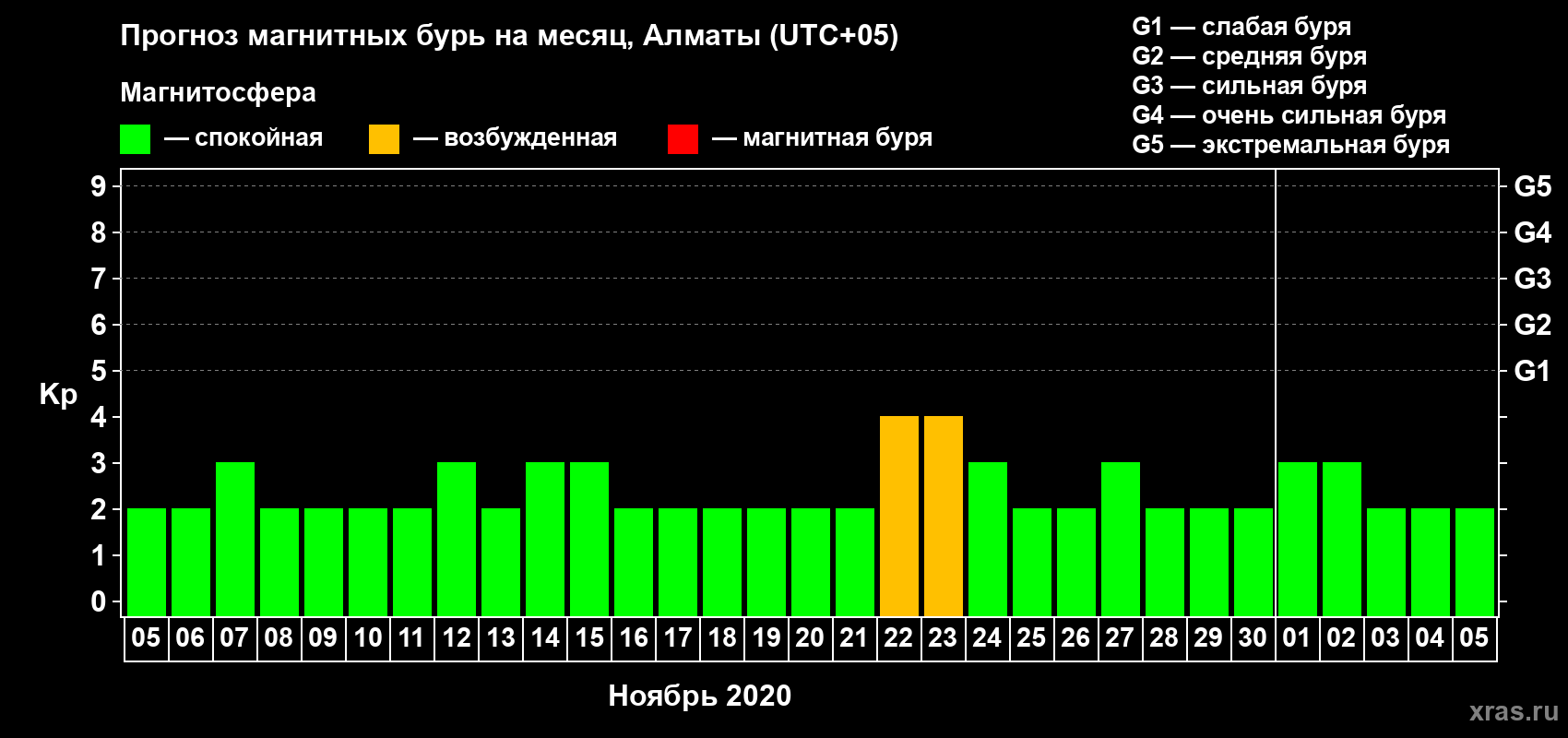 Прогноз магнитных бурь Алматы — 5 ноября 2020 года