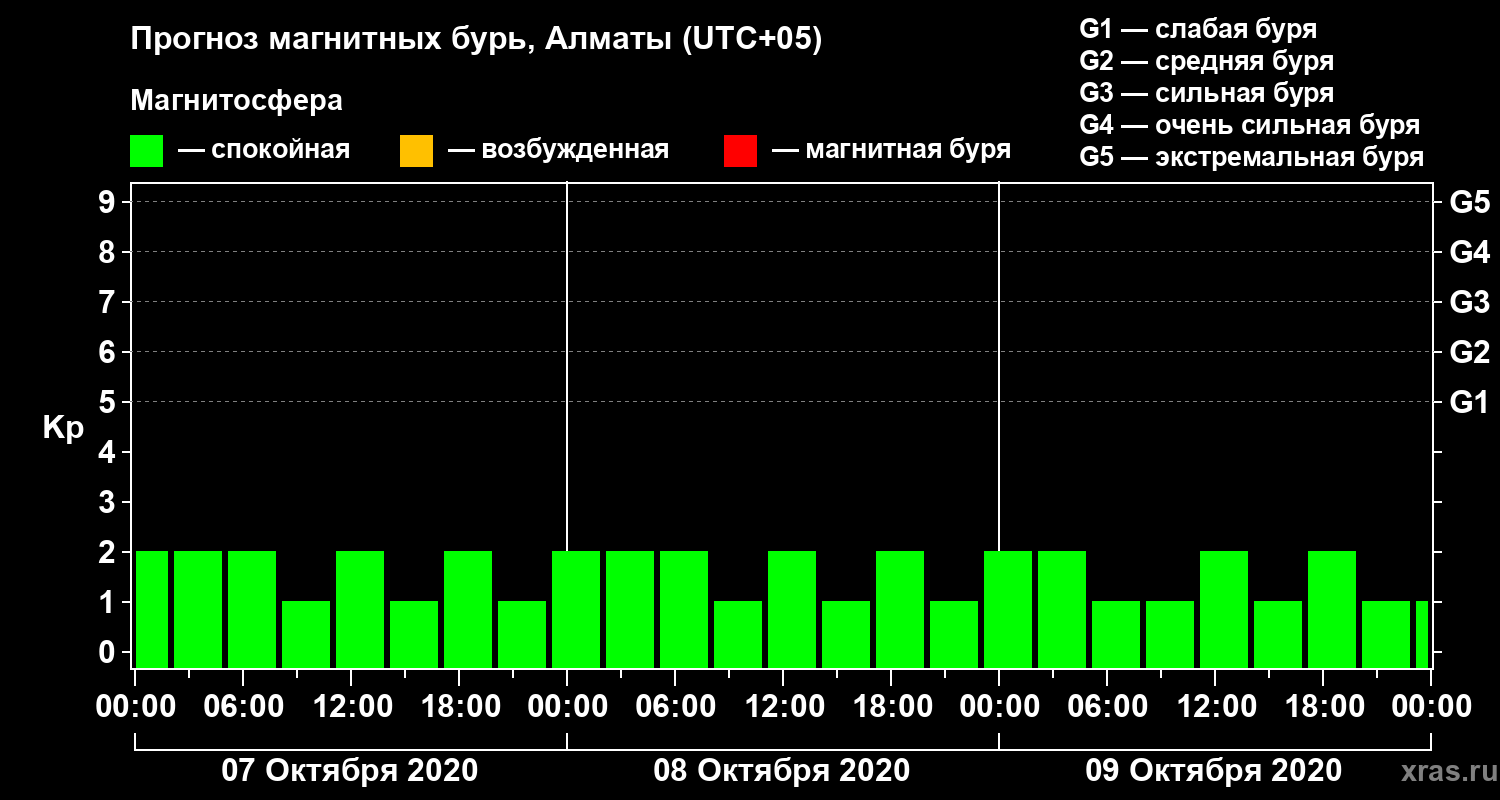 Прогноз магнитных бурь Алматы — 7 октября 2020 года