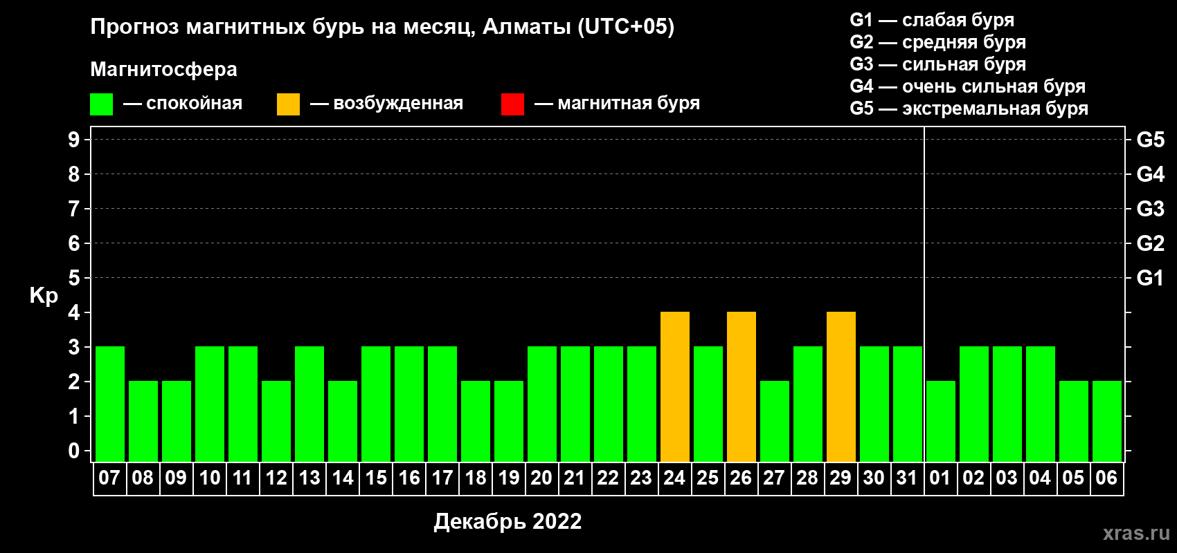 Прогноз магнитных бурь Алматы — 7 декабря 2021 года