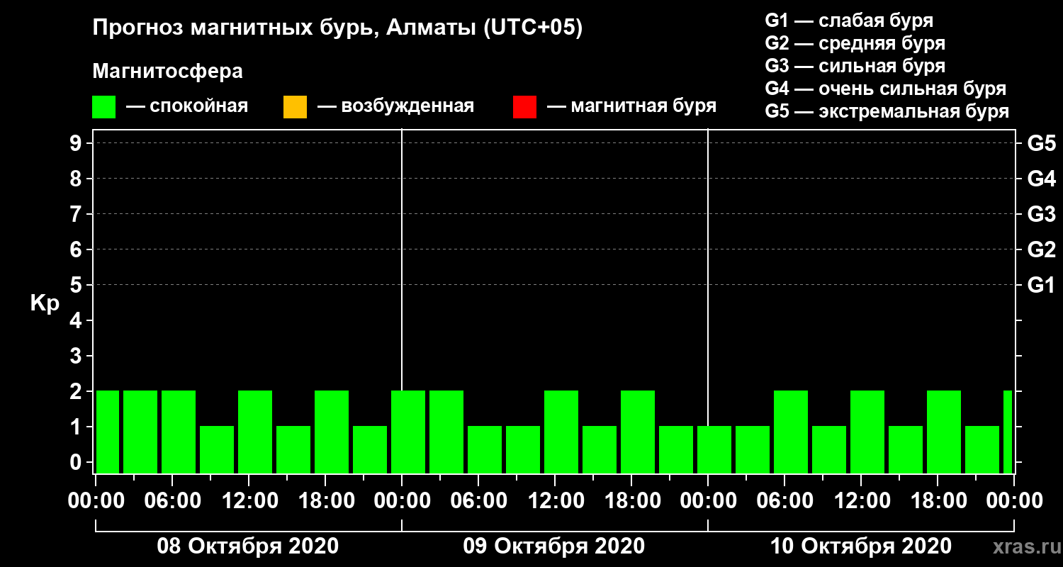 Прогноз магнитных бурь Алматы на 8 октября 2020 года