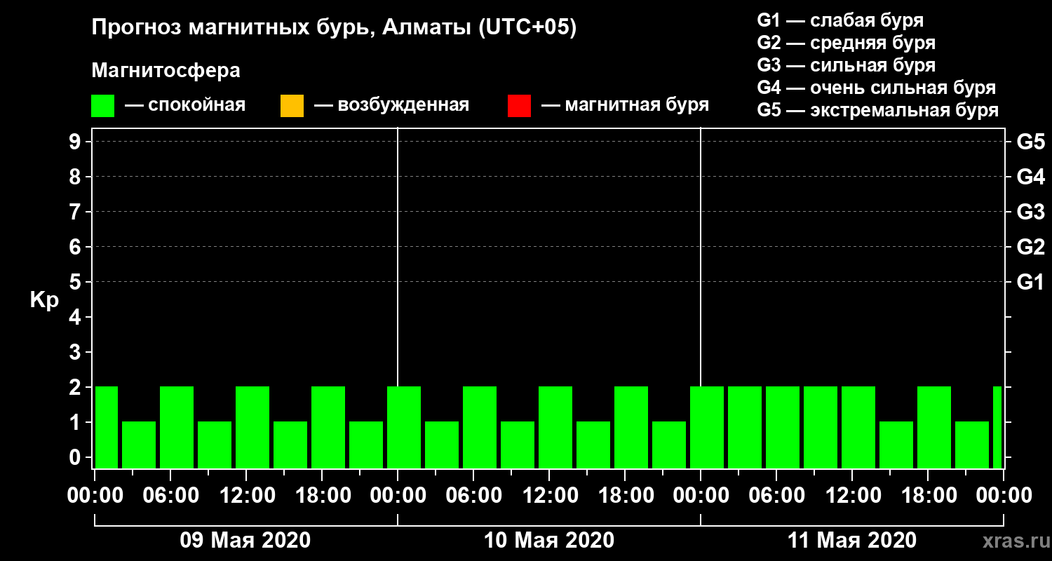 Прогноз магнитных бурь Алматы — 9 мая 2020 года