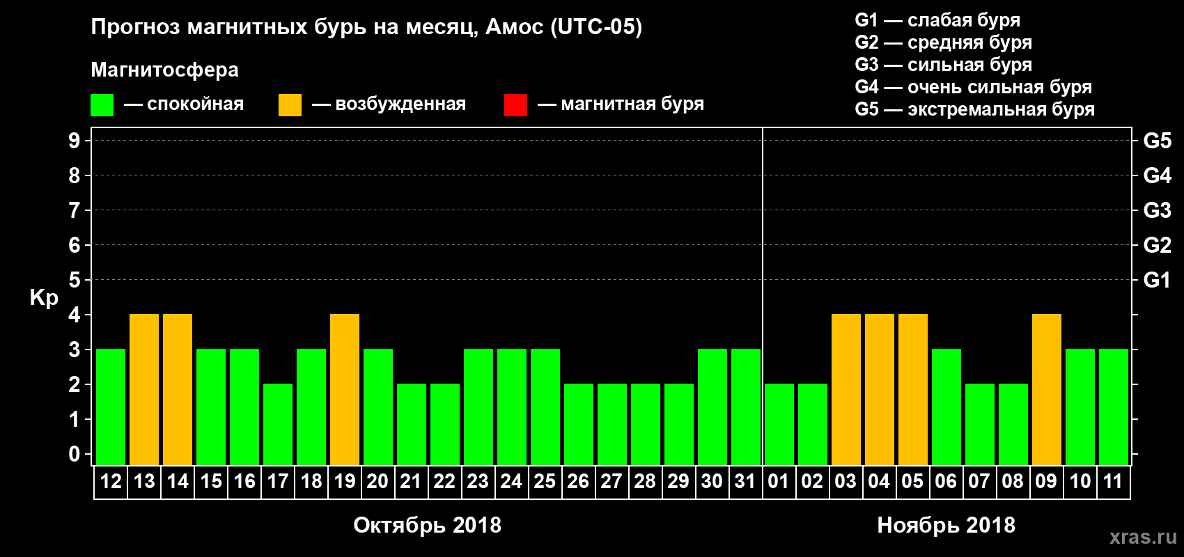 Прогноз магнитных бурь в Амосе — 12 октября 2018 года