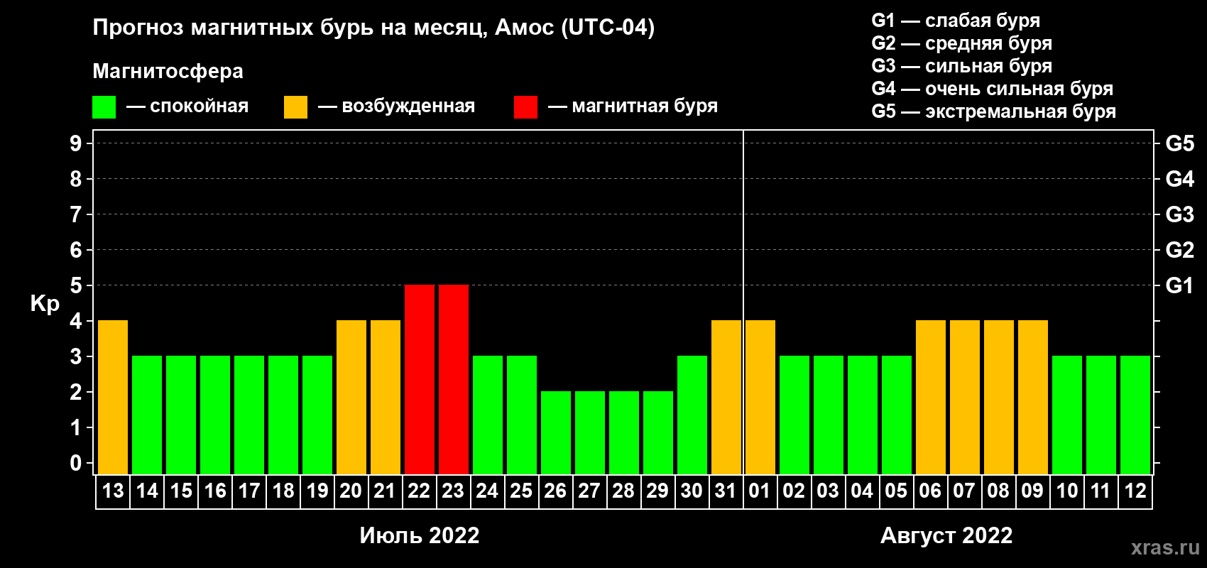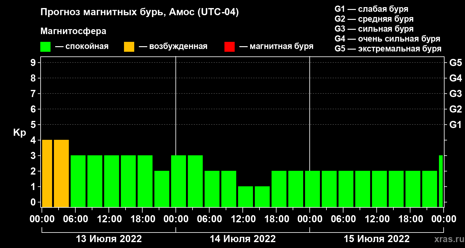 Прогноз магнитных бурь в Амосе на 13 июля 2022 года