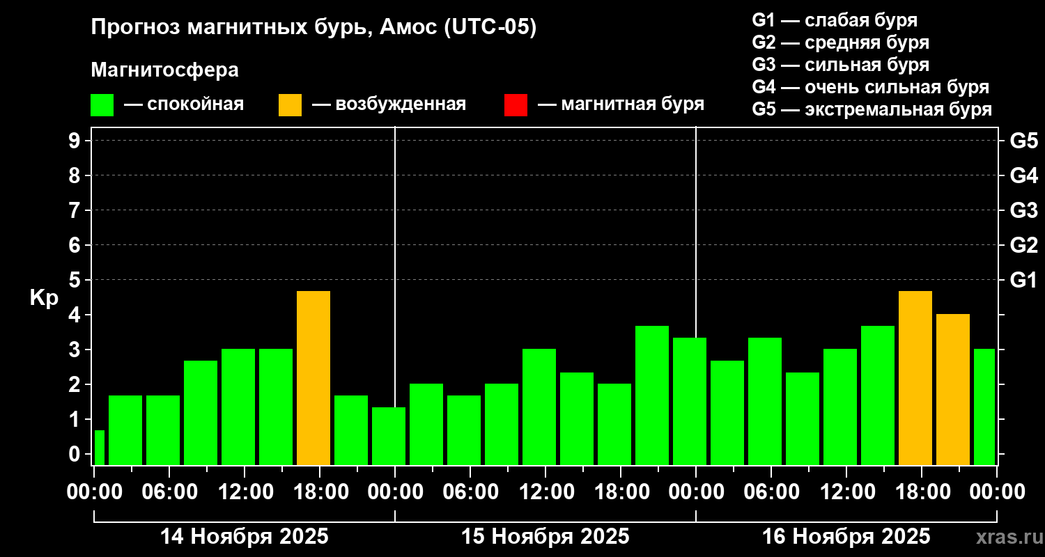 Прогноз магнитных бурь в Амосе — 14 ноября 2025 года