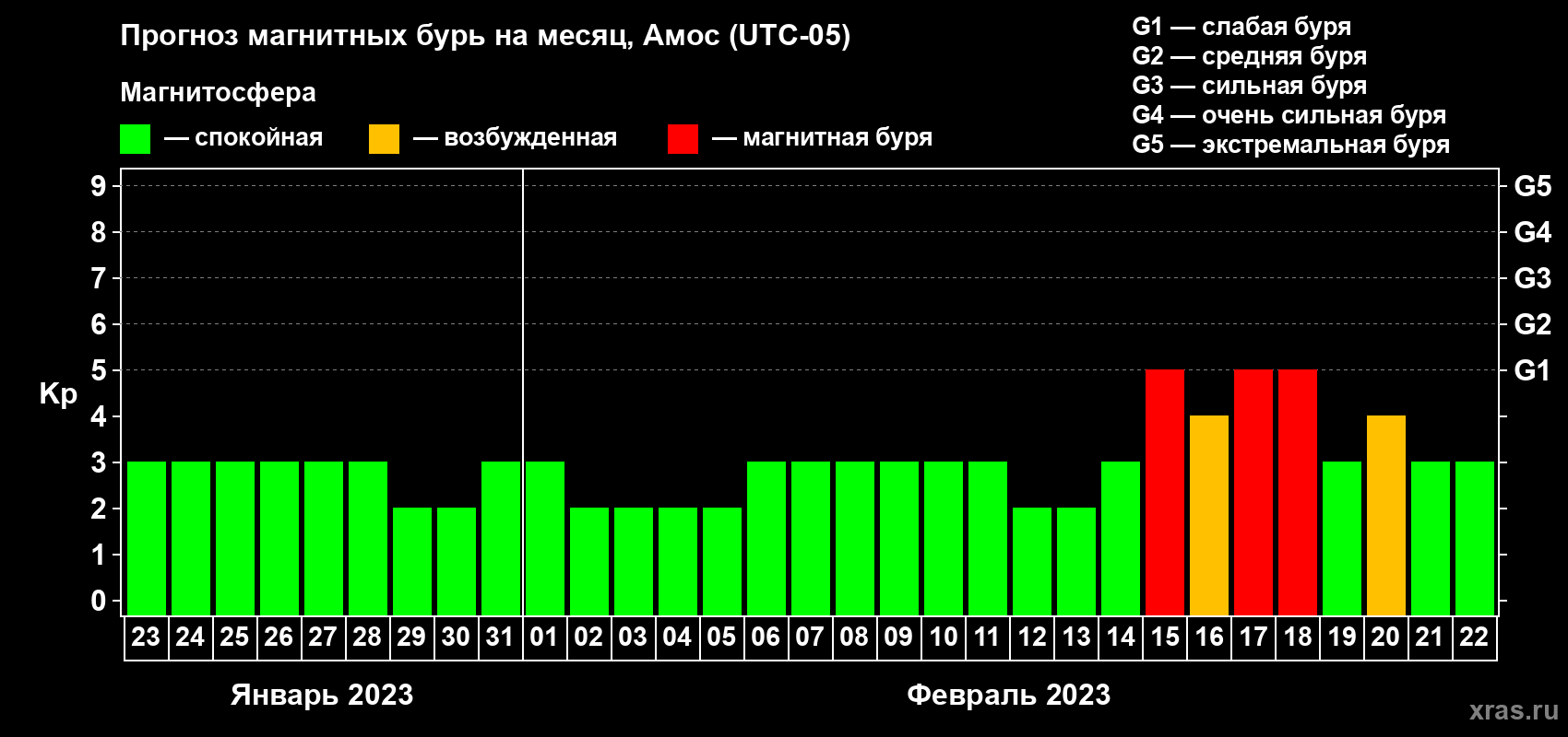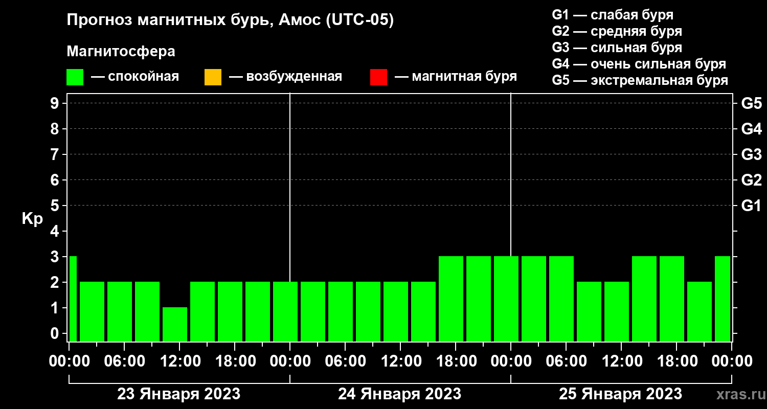 Прогноз магнитных бурь в Амосе на 23 января 2023 года