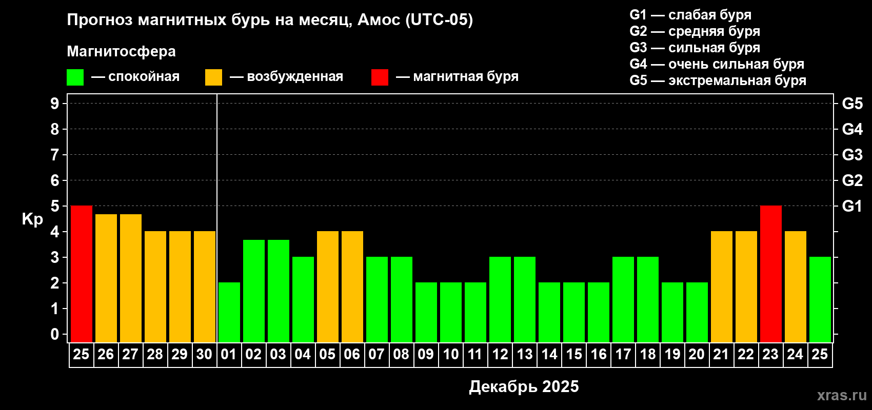 Прогноз магнитных бурь в Амосе на 25 ноября 2025 года