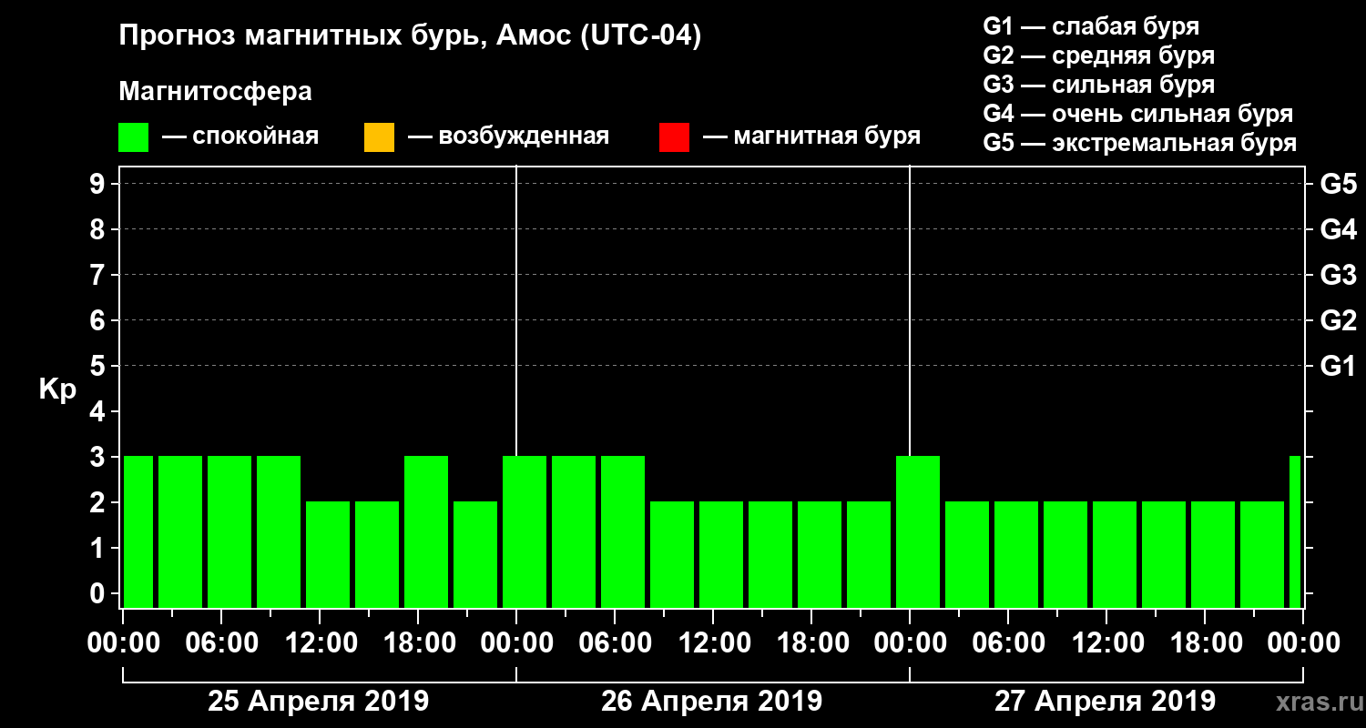 Прогноз магнитных бурь в Амосе на 25 апреля 2019 года