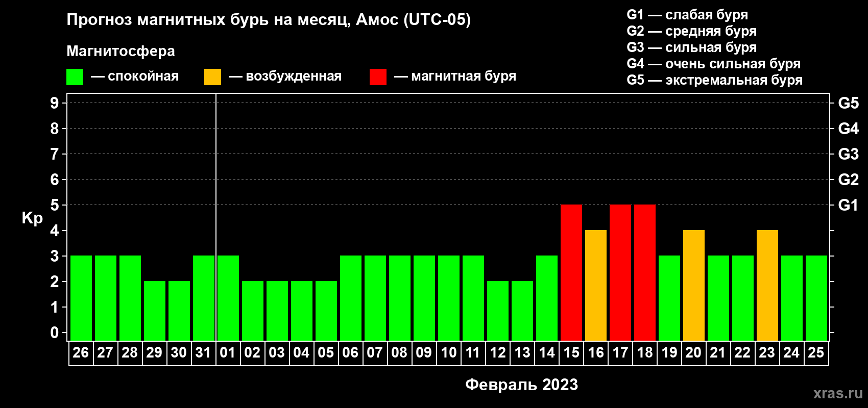 Прогноз магнитных бурь в Амосе на 26 января 2023 года