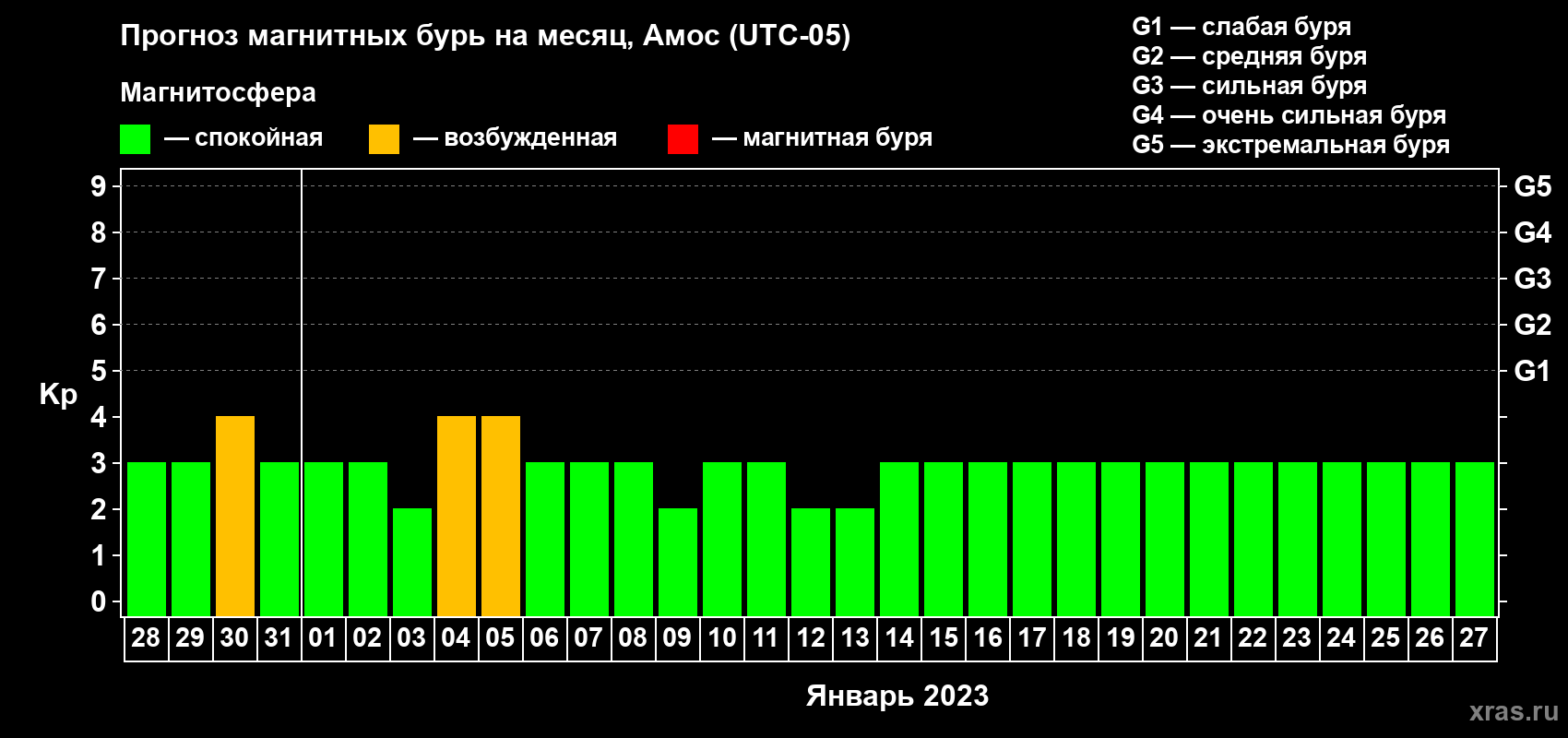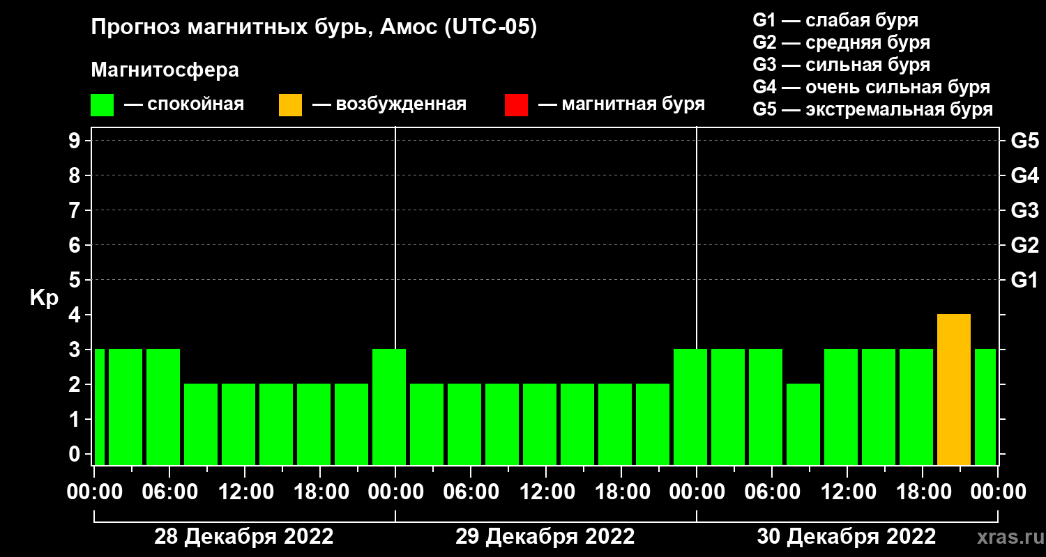 Прогноз магнитных бурь в Амосе на 28 декабря 2022 года