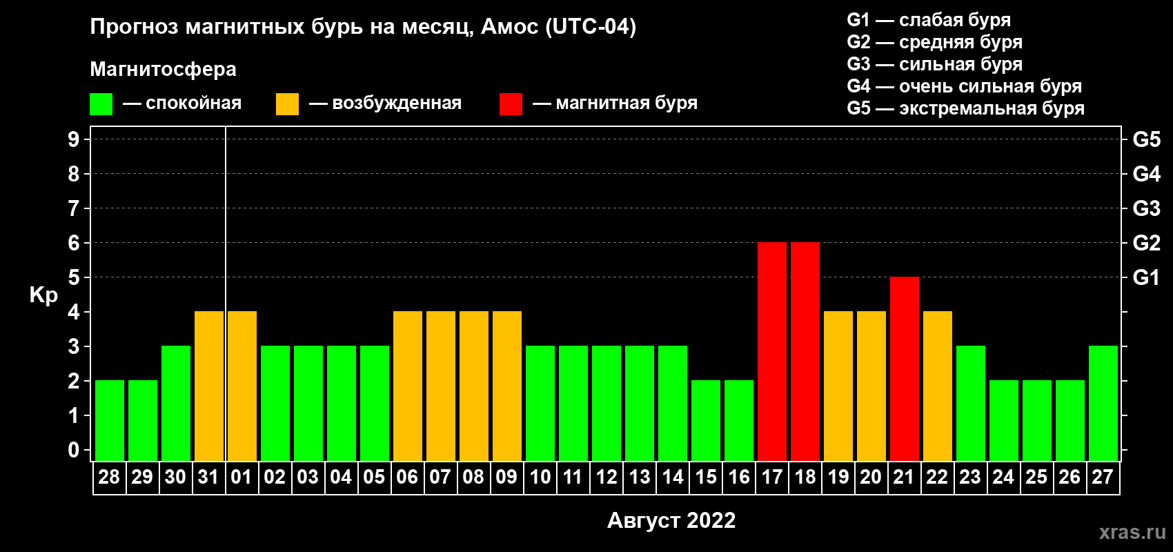 Прогноз магнитных бурь в Амосе на 28 июля 2022 года