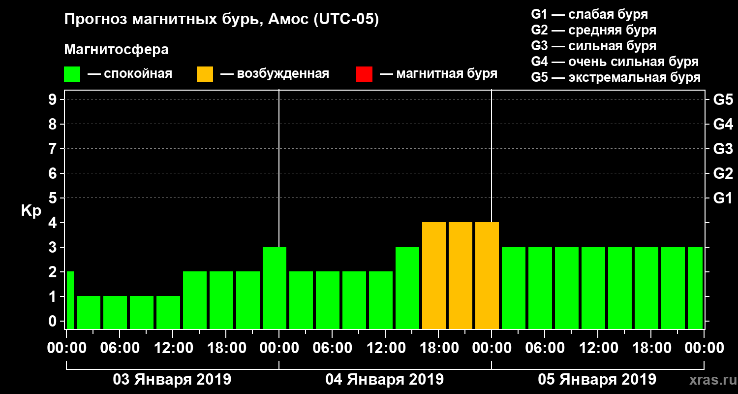 Прогноз магнитных бурь в Амосе на 3 января 2019 года