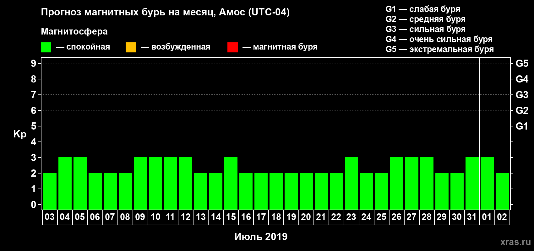 Прогноз магнитных бурь в Амосе — 3 июля 2019 года