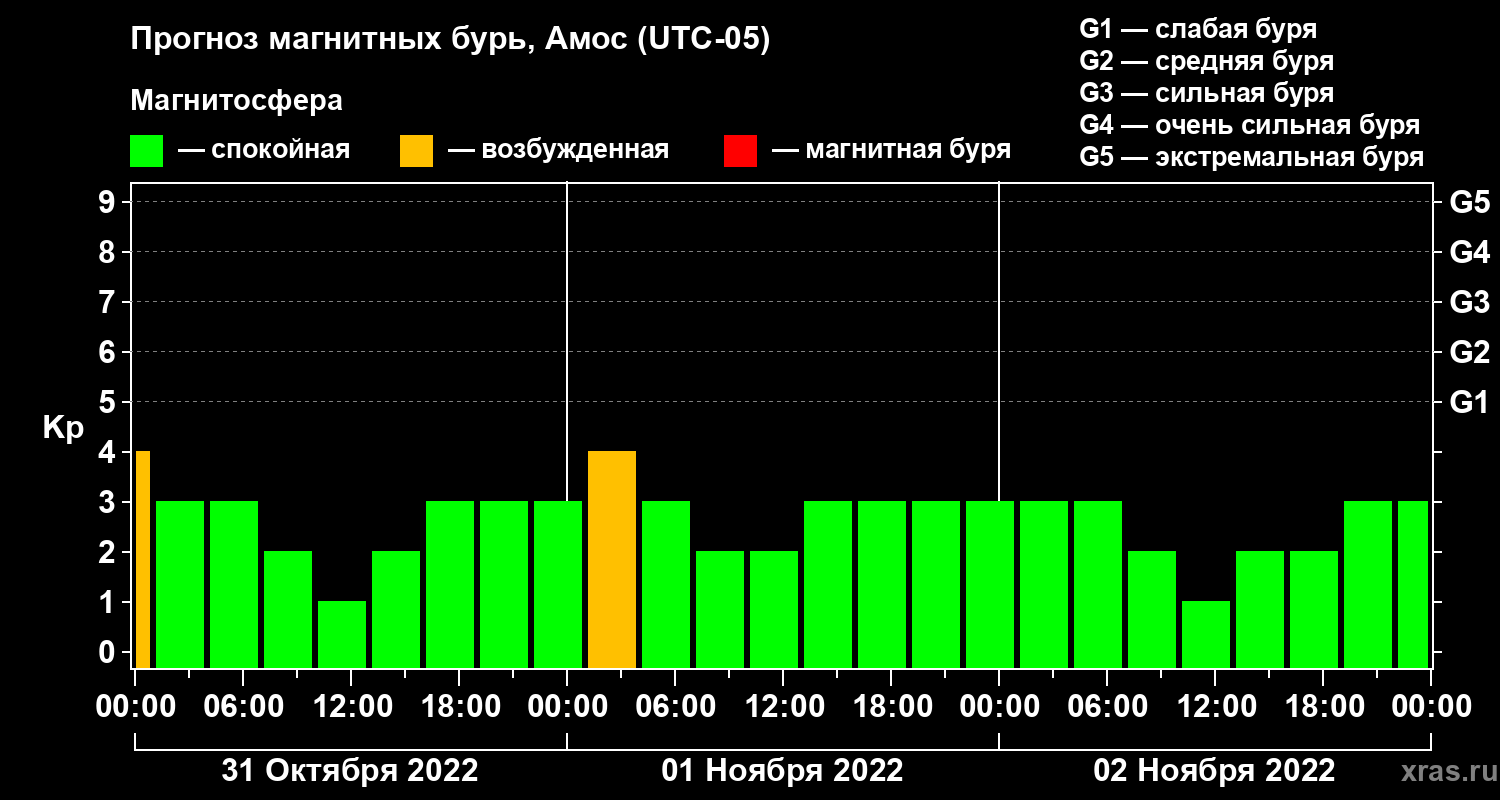 Прогноз магнитных бурь в Амосе на 31 октября 2022 года